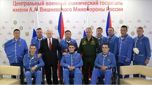 ·普京視察醫(yī)院慰勉傷兵,稱“受過炮火洗禮者將在俄軍中任要職”。