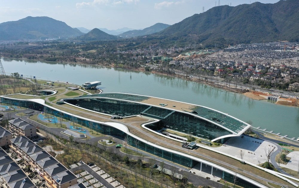 2022年3月11日拍攝的富陽(yáng)水上運(yùn)動(dòng)中心(無人機(jī)照片)。新華社記者 徐昱 攝