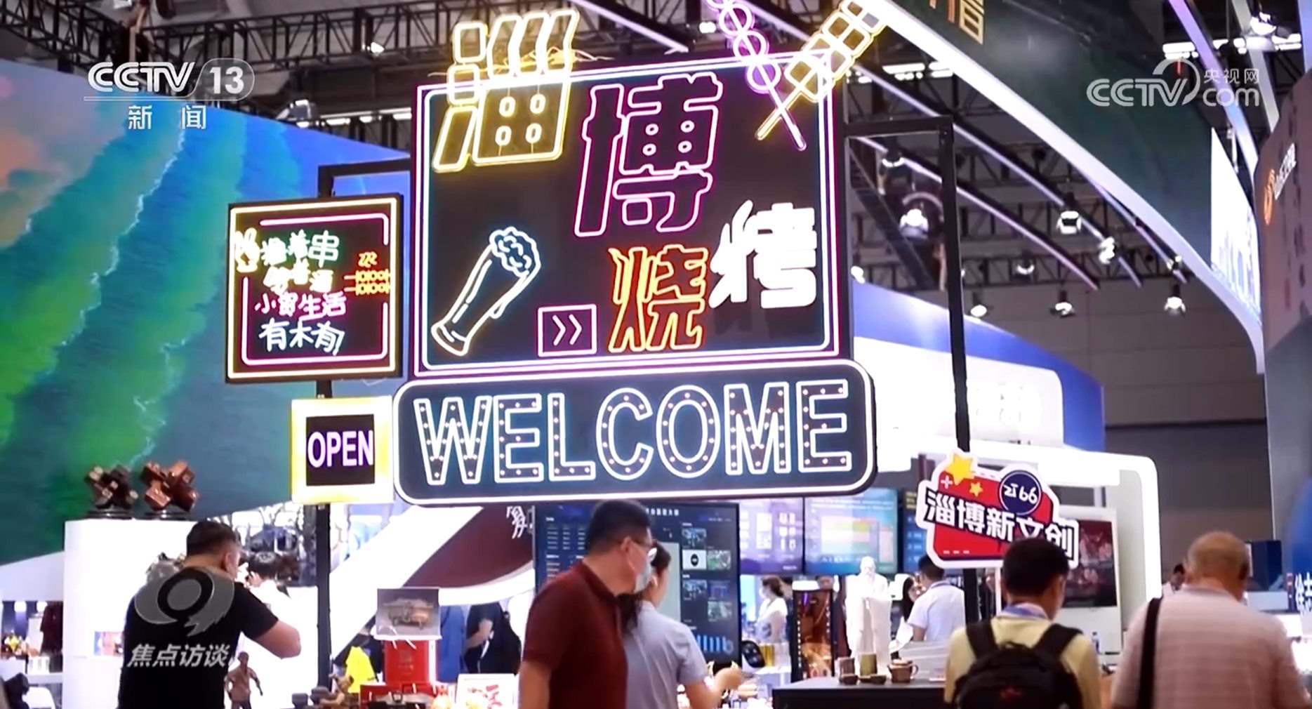要說本次文博會最吸引人的展位,淄博燒烤算一個??墒?,燒烤怎么進(jìn)了文博會?原來,這是一個2.8米長的軟陶泥塑微縮景觀,生動還原了淄博燒烤的現(xiàn)實場景。此外,展臺上的琉璃燒烤大餐也吸引了不少人拍照打卡。當(dāng)然,現(xiàn)場還是有可以吃的美食——大名鼎鼎的山東煎餅。