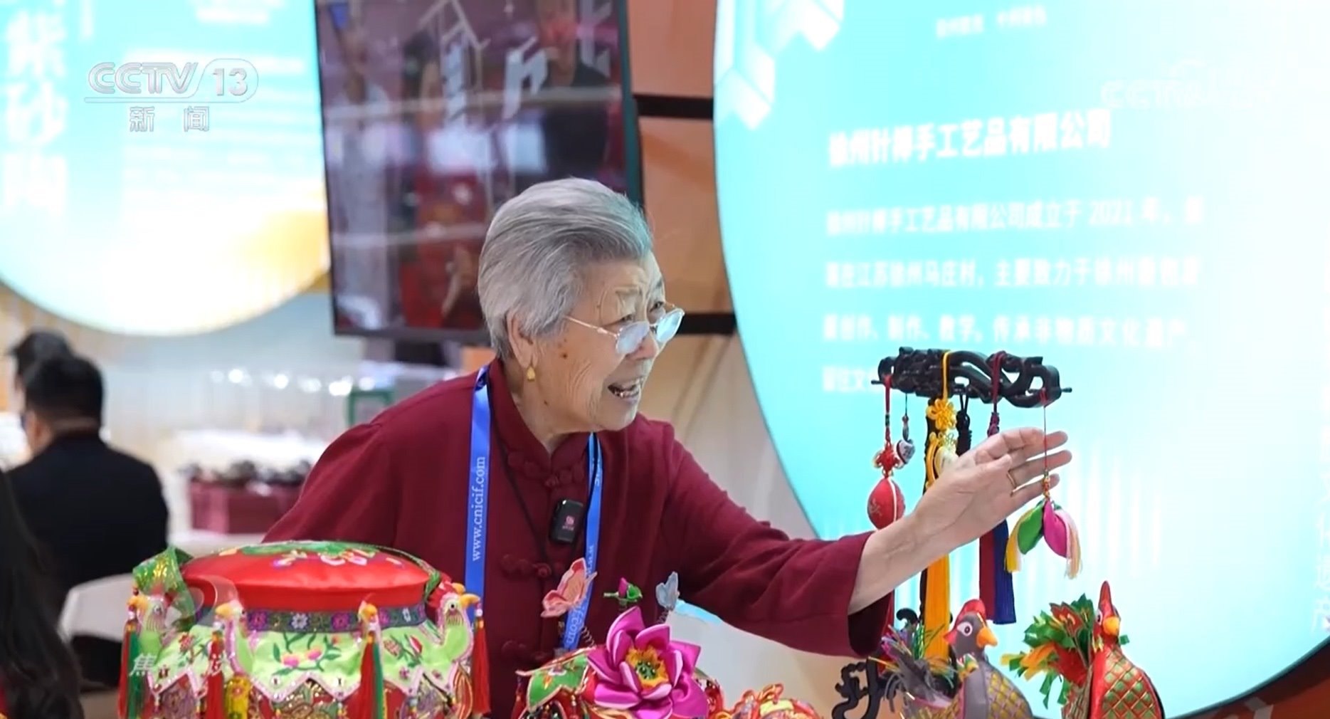 王秀英孫女孫歌堯:“不僅是在外觀上,技術(shù)上也要創(chuàng)新。我們把3D打板加明暗敲針,我們有6項計算機(jī)軟件著作權(quán),運(yùn)用到香包上面,就可以提高30%到50%的生產(chǎn)效率。以前我們參加展會都只帶傳統(tǒng)一些的,這一次是帶我創(chuàng)新的品牌來參展?!?/p>