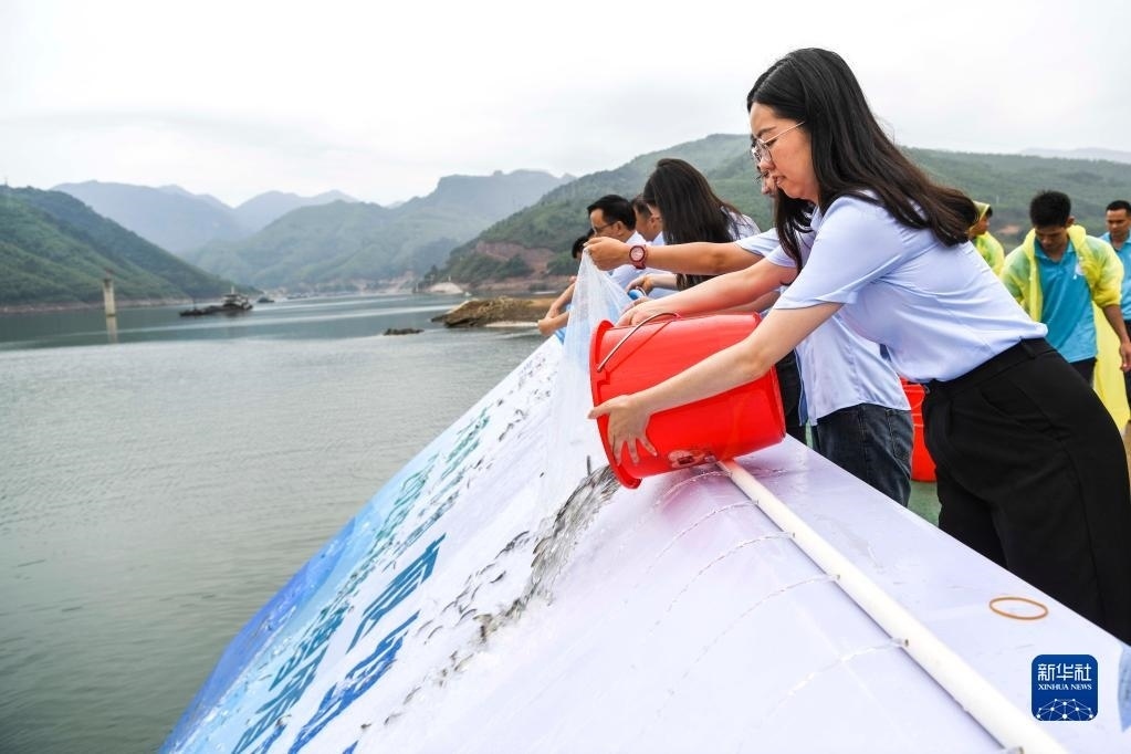 當日,位于廣西桂平市的大藤峽水利樞紐工程舉行夏季魚苗放流活動。新華社記者 曹祎銘 攝