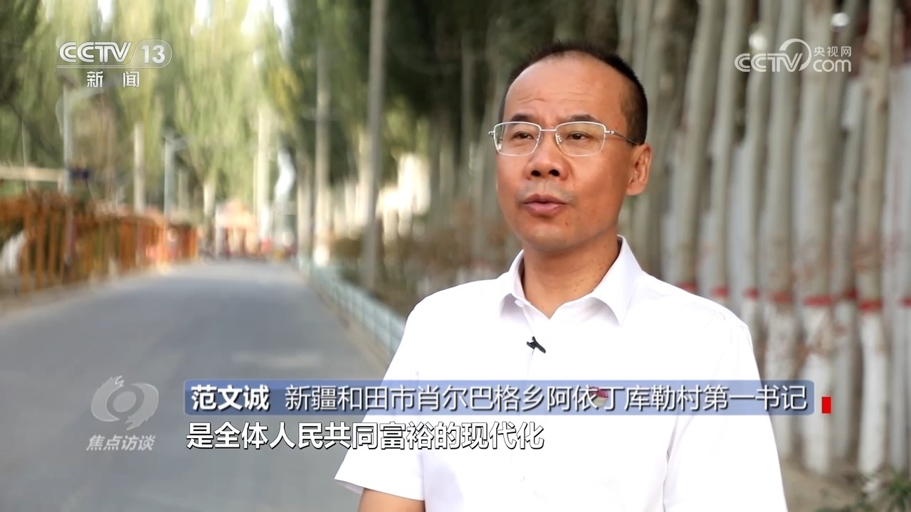 新疆和田市肖爾巴格鄉(xiāng)阿依丁庫(kù)勒村第一書(shū)記范文誠(chéng):“中國(guó)式現(xiàn)代化是人口規(guī)模巨大的現(xiàn)代化,是全體人民共同富裕的現(xiàn)代化,將理論聯(lián)系當(dāng)前的農(nóng)村實(shí)際相切合,要始終堅(jiān)持從人民出發(fā)、從實(shí)際出發(fā),分類確定建設(shè)發(fā)展模式、特色產(chǎn)業(yè)。”