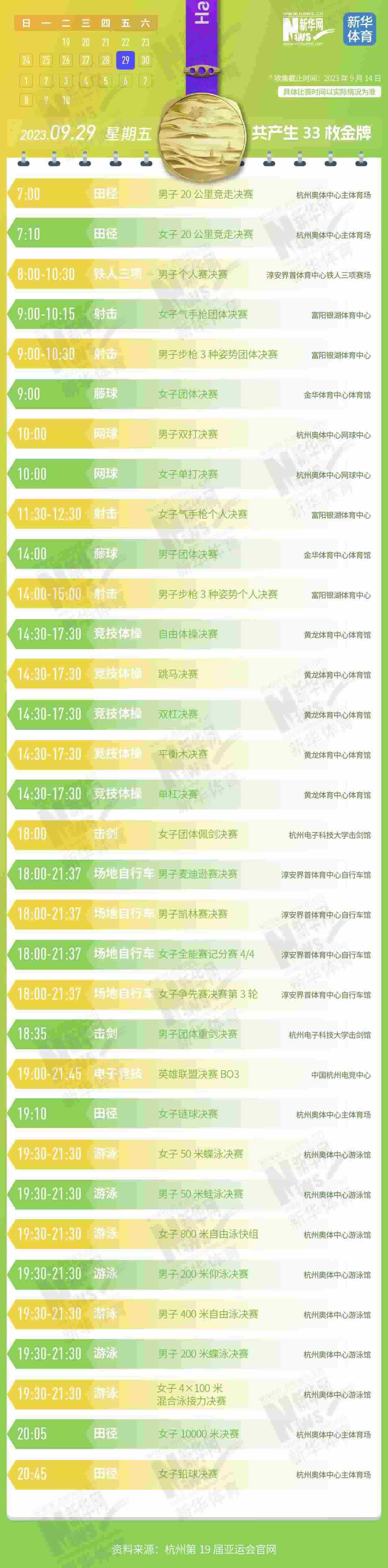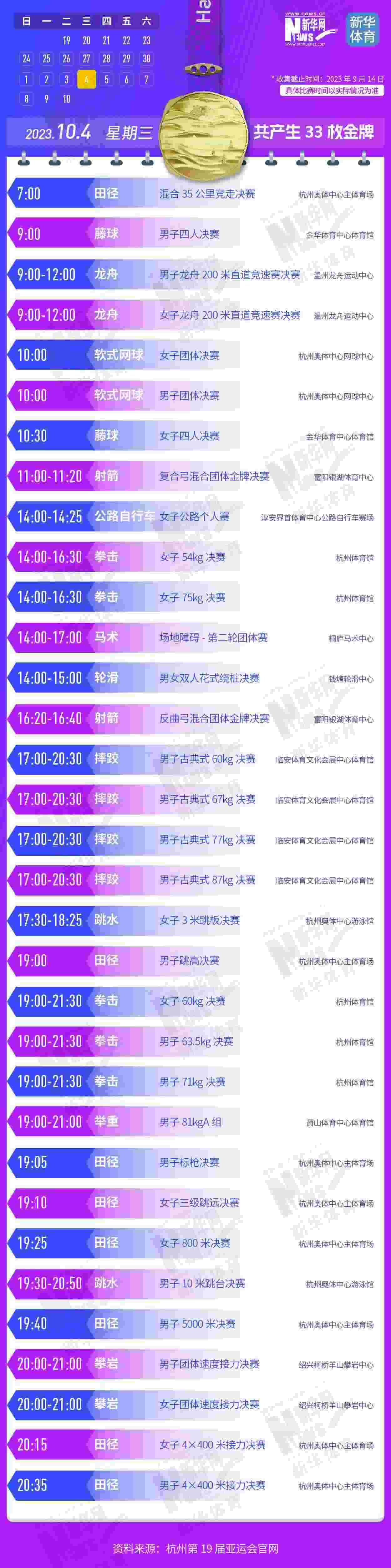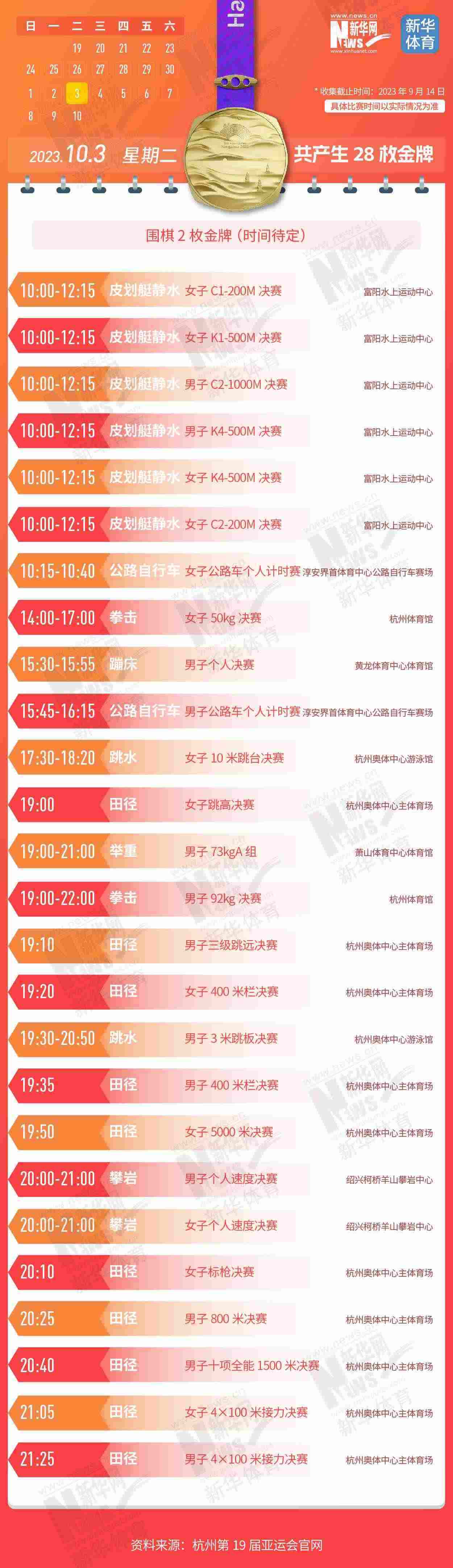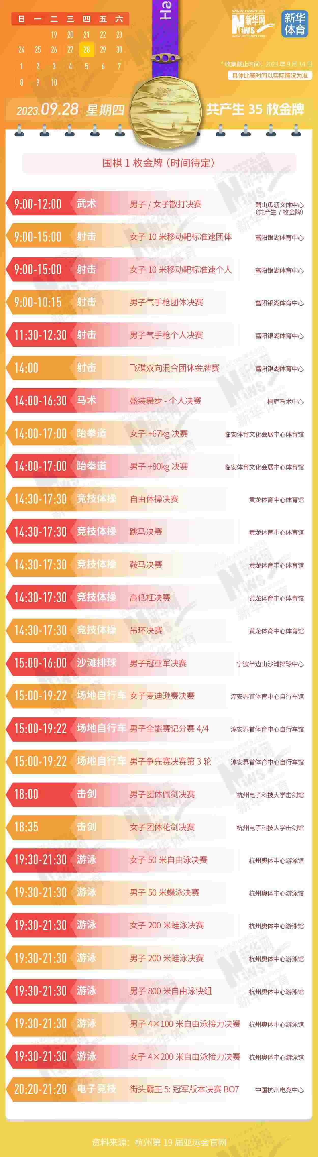 杭州第19屆亞運會即將開幕。本屆亞運會將產生481枚金牌,快收藏這份金牌賽事日歷,助你精準觀賽!