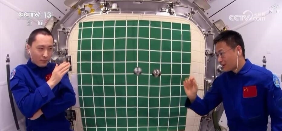 在約48分鐘的授課中,神舟十六號(hào)航天員景海鵬、朱楊柱、桂海潮生動(dòng)展示介紹了空間站夢(mèng)天實(shí)驗(yàn)艙工作生活場(chǎng)景,演示了球形火焰實(shí)驗(yàn)、奇妙“乒乓球”實(shí)驗(yàn)、動(dòng)量守恒實(shí)驗(yàn)以及又見(jiàn)陀螺實(shí)驗(yàn),并生動(dòng)講解了實(shí)驗(yàn)背后的科學(xué)原理。授課期間,航天員通過(guò)視頻通話(huà)形式與地面課堂師生進(jìn)行了實(shí)時(shí)互動(dòng)交流。