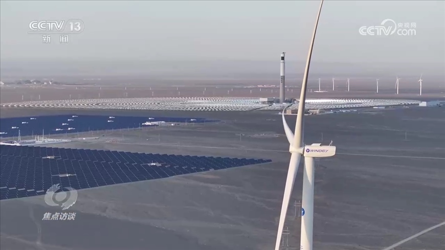 新疆生產(chǎn)建設兵團第十三師新星市發(fā)改委主任龍剛:“我們新星市光伏和風電的裝機總?cè)萘窟_到了240萬千瓦,2022年風電和光伏總發(fā)電量是38億度電,相當于減排二氧化碳300萬噸左右?!?/p>