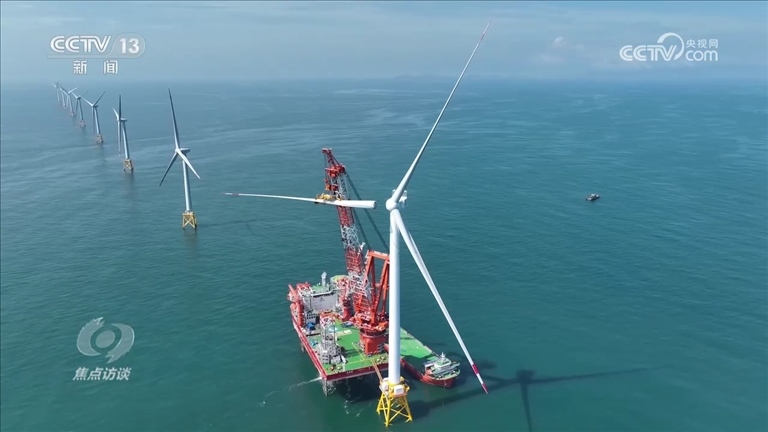 明陽集團黨委書記、董事長張傳衛(wèi):“18兆瓦的風機葉輪直徑可以達到290米,它轉(zhuǎn)一圈就可以發(fā)到60度電,一年下來可以發(fā)1億度電,覆蓋10萬個家庭用電,減少7萬噸的二氧化碳排放?!?/p>