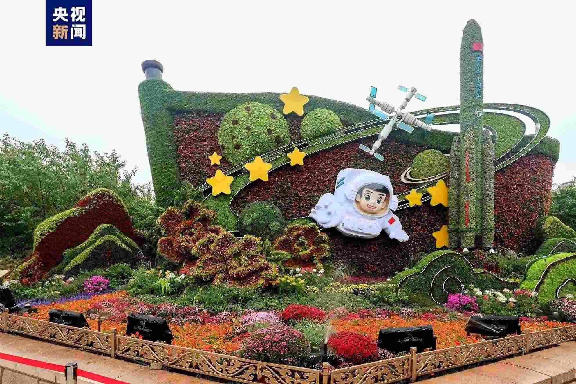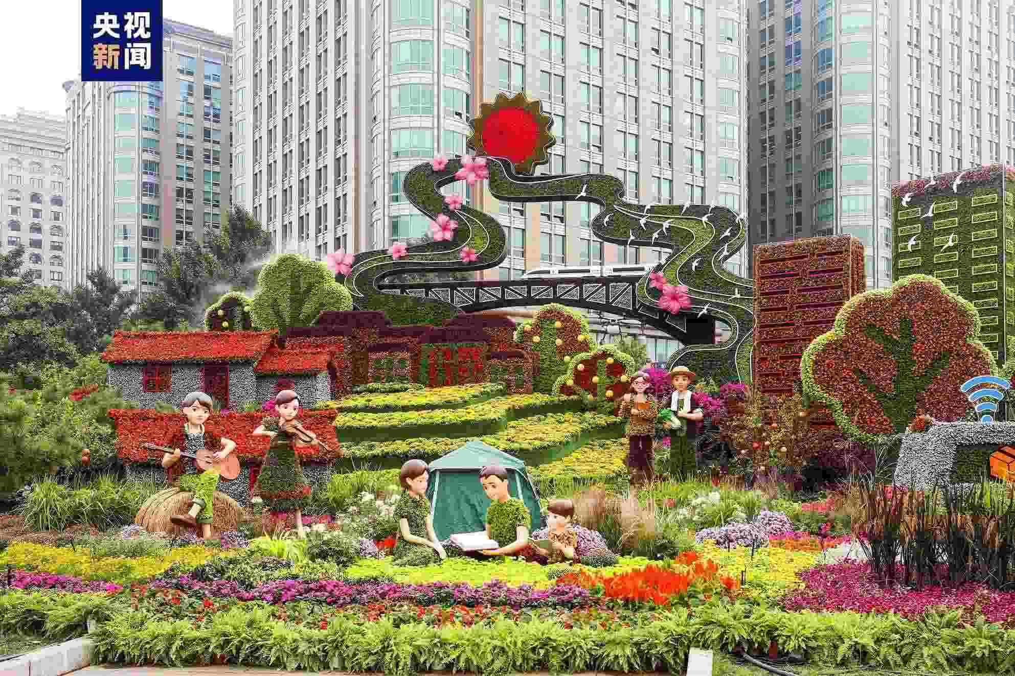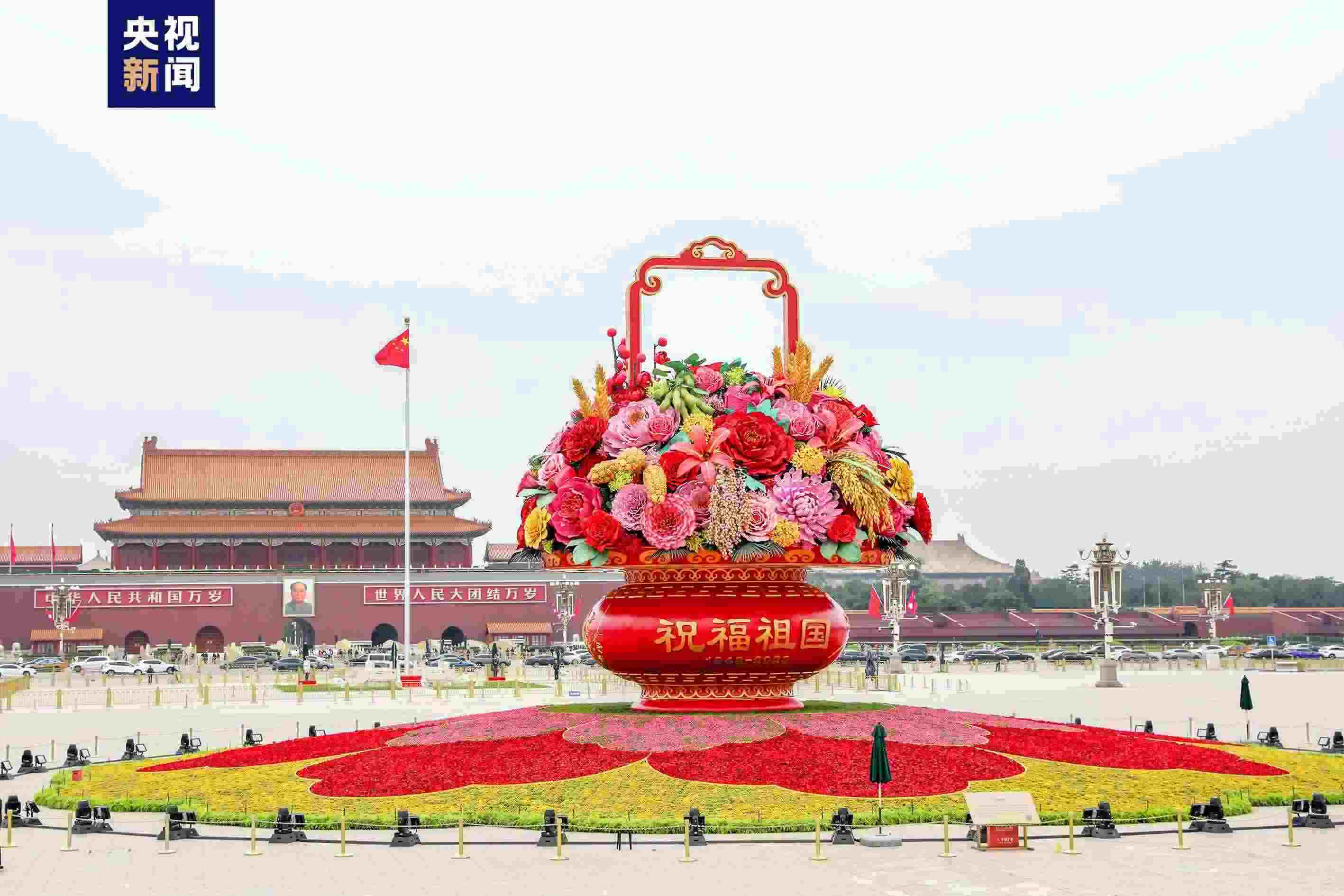 “祝福祖國(guó)”巨型花籃亮相 天安門廣場(chǎng)和長(zhǎng)安街沿線國(guó)慶花卉布置完工