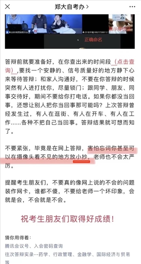 ·鄭州大湖南一生答辯時“放小抄”?官方回應:表述用詞不當,不能用‘小抄’。本意是指答辯參考材料,跟作弊是兩碼事,今后會做修改。