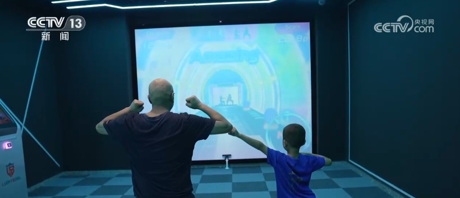 在村里的良渚運動館,大人、孩子沉浸在虛擬世界里體驗滑雪、沖浪、賽車、網(wǎng)球等運動。數(shù)字化的運動館已經(jīng)走進了鄉(xiāng)村,雖然這里剛剛試運行1個月,但是特別受周邊村民的喜歡。最多的一天接待人次達到了800多人次,這個場館點燃了很多人的運動熱情。