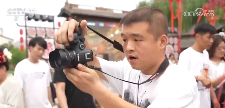 宋佳瑞之前是影樓里的攝影師,現(xiàn)在專職在景區(qū)拍照。他告訴記者,洛邑古城晚上來的游客更多,為了拍照效果,他還專門購買了燈光、道具等設(shè)備。
