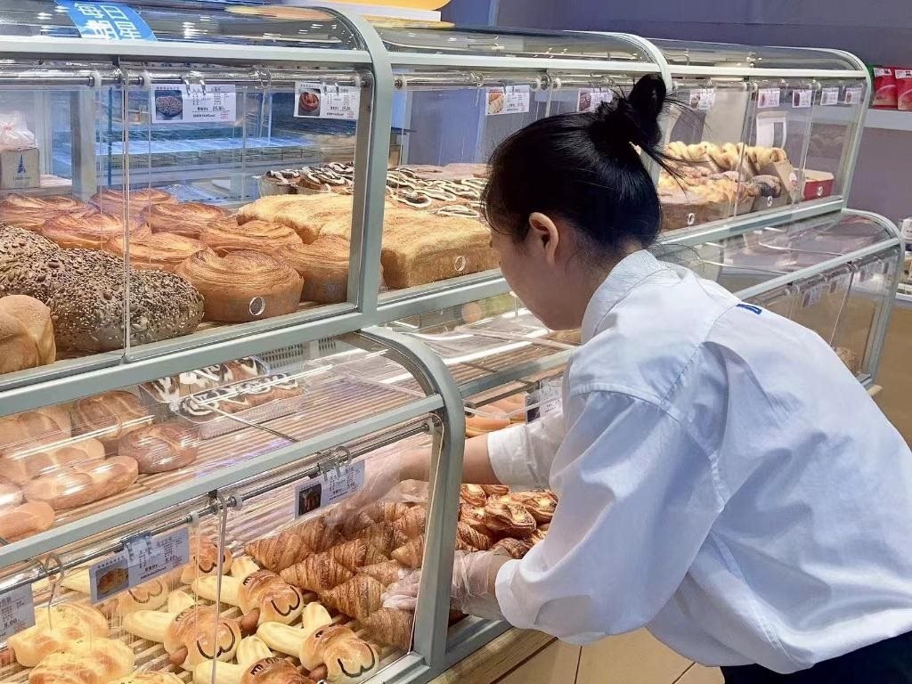 山西太原一家面包門店的員工正在整理烘焙鮮食。(受訪單位供圖)