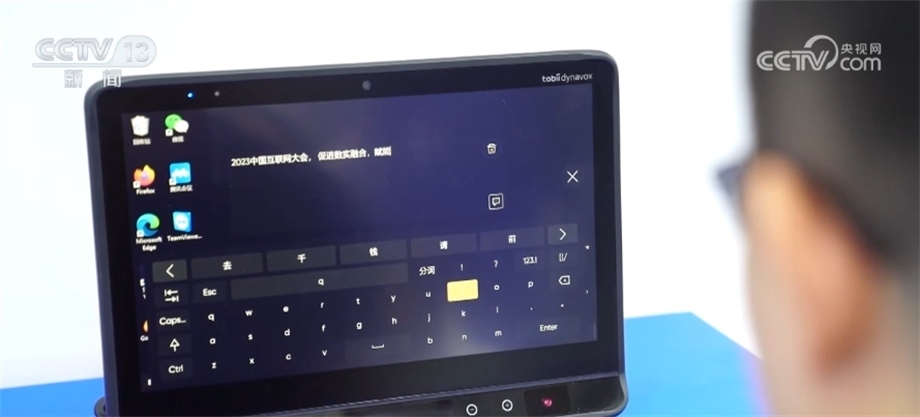 這位技術(shù)人員正在演示“眼動(dòng)輸入法”,通過眼球轉(zhuǎn)動(dòng)和凝視來操作電腦完成輸入。這種眼球追蹤技術(shù)通過眼控儀上配備的多組近紅外光源,借助精密算法得到目光注視點(diǎn)坐標(biāo)位置,從而讓電腦知道眼睛在看哪里,實(shí)現(xiàn)用目光操作電腦,取代傳統(tǒng)的鍵盤鼠標(biāo)。