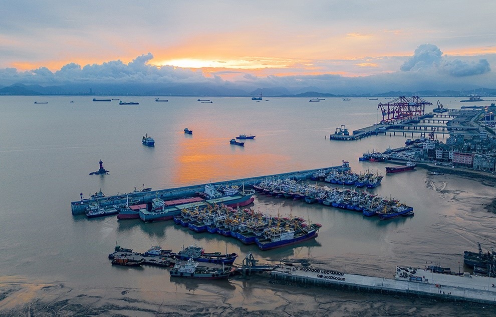 △2023年7月24日,避風(fēng)漁船??吭谡憬_州的漁港。