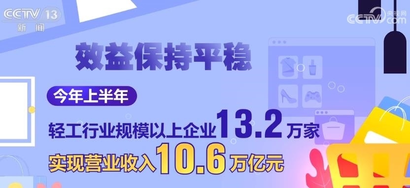 效益保持平穩(wěn)。今年上半年,輕工行業(yè)規(guī)模以上企業(yè)13.2萬家,實(shí)現(xiàn)營業(yè)收入10.6萬億元,同比增長2.1%,高于全國工業(yè)2.5個百分點(diǎn),實(shí)現(xiàn)利潤5682億元。