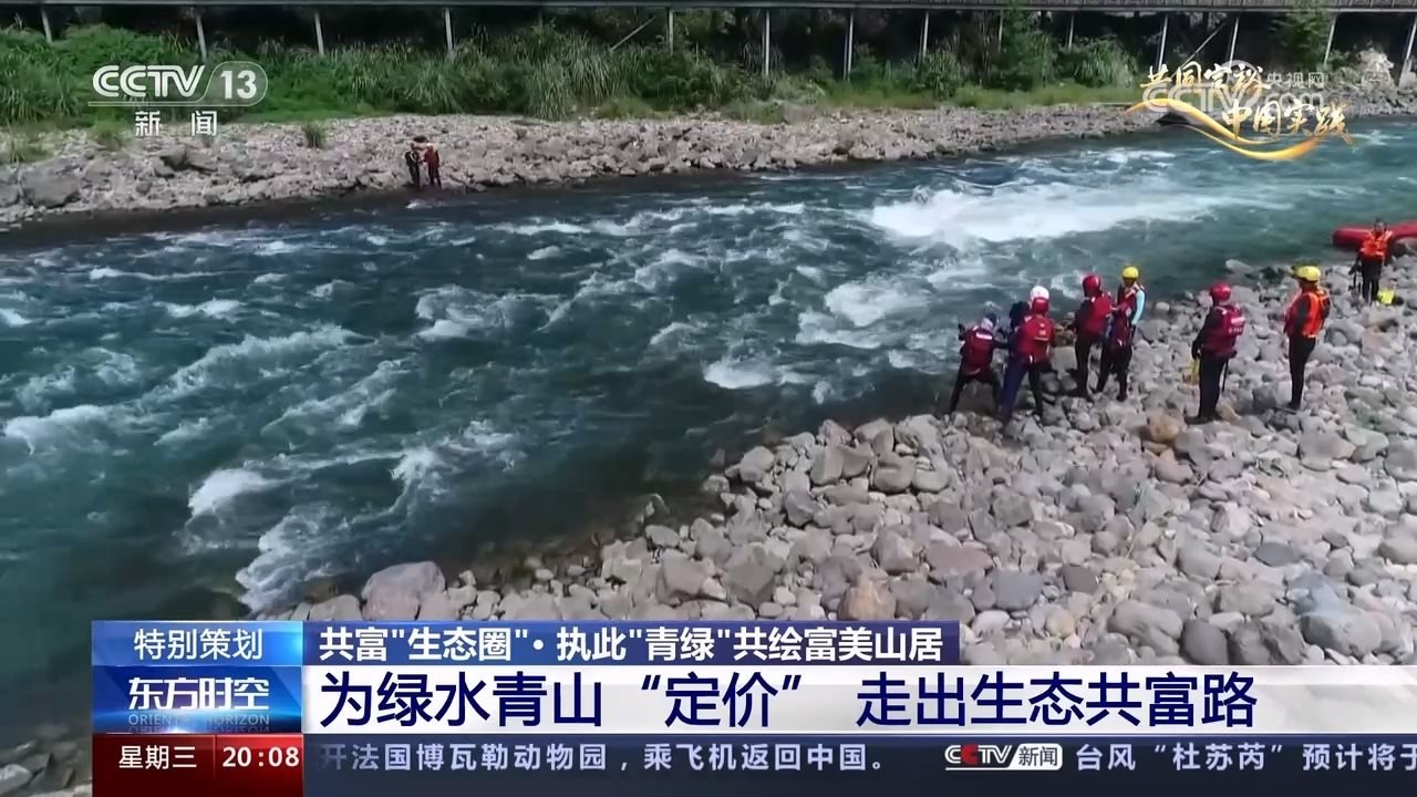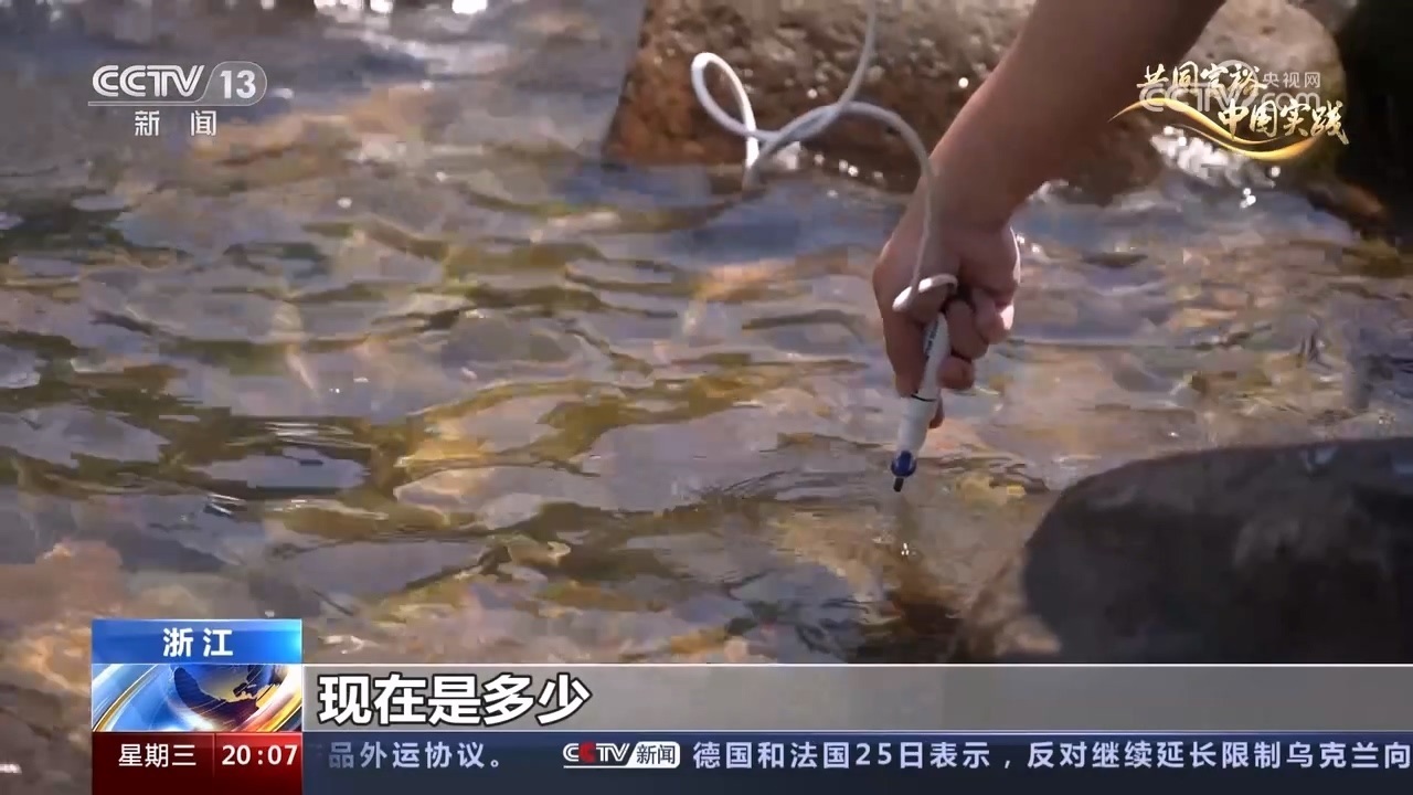 工作人員正在檢測溪水水質,為GEP中“水質凈化”指標采集數(shù)據(jù)。