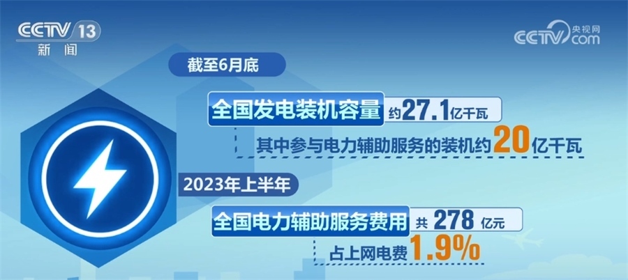 電力輔助服務(wù)是指為維護(hù)電力系統(tǒng)安全穩(wěn)定運行、保障電能質(zhì)量、促進(jìn)新能源消納,由市場運營機(jī)構(gòu)統(tǒng)一組織采購調(diào)用的調(diào)峰、調(diào)頻、備用等系統(tǒng)調(diào)節(jié)服務(wù)。截至6月底,全國發(fā)電裝機(jī)容量約27.1億千瓦,其中參與電力輔助服務(wù)的裝機(jī)約20億千瓦。2023年上半年,全國電力輔助服務(wù)費用共278億元,占上網(wǎng)電費1.9%。