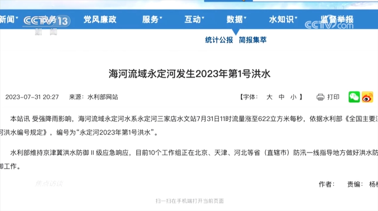 7月30日和31日,水利部接連發(fā)出三條編號(hào)洪水通知:海河流域子牙河發(fā)生2023年第1號(hào)洪水、海河流域永定河發(fā)生2023年第1號(hào)洪水、海河流域大清河發(fā)生2023年第1號(hào)洪水。