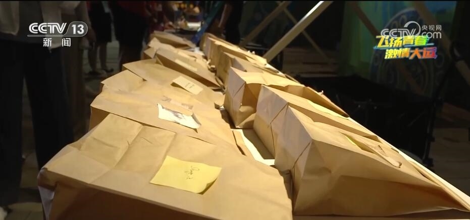 在大運(yùn)村的文化市集“禮物漂流記”活動(dòng)現(xiàn)場(chǎng),工作人員正指引參與活動(dòng)的運(yùn)動(dòng)員們完成互換禮物的游戲。參與者經(jīng)過(guò)登記,留下自己的禮物并寫下祝福語(yǔ),就可以在盲盒區(qū)挑選一份禮物帶走。不同國(guó)家的徽章、帽子、衣服,運(yùn)動(dòng)員們自制的手鏈、戒指,甚至從家鄉(xiāng)帶來(lái)的石頭,來(lái)自世界各地的特色禮物在大運(yùn)村傳遞著文化、友誼和美好的祝福。