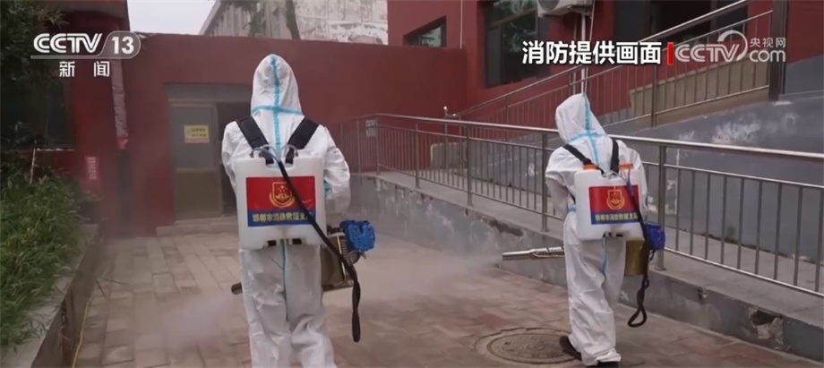 央視網(wǎng)消息:在河北涿州,消防員在多個小區(qū)、老年公寓等持續(xù)開展清淤排水消殺工作。