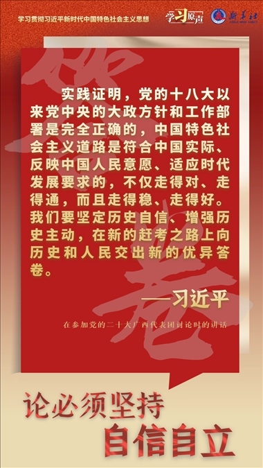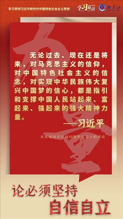 中國人民和中華民族從近代以后的深重苦難走向偉大復興的光明前景,從來就沒有教科書,更沒有現(xiàn)成答案。黨的百年奮斗成功道路是黨領(lǐng)導人民獨立自主探索開辟出來的,馬克思主義的中國篇章是中國共產(chǎn)黨人依靠自身力量實踐出來的,貫穿其中的一個基本點就是中國的問題必須從中國基本國情出發(fā),由中國人自己來解答。我們要堅持對馬克思主義的堅定信仰、對中國特色社會主義的堅定信念,堅定道路自信、理論自信、制度自信、文化自信,以更加積極的歷史擔當和創(chuàng)造精神為發(fā)展馬克思主義作出新的貢獻,既不能刻舟求劍、封閉僵化,也不能照抄照搬、食洋不化。