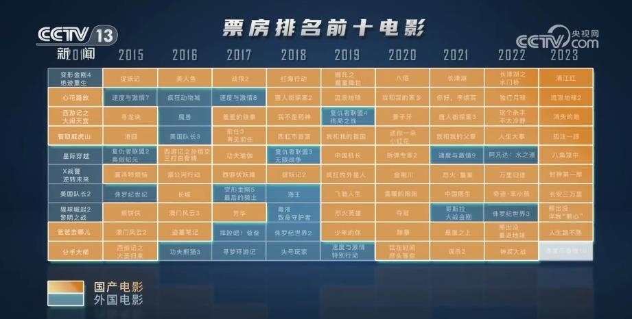 央視網(wǎng)消息:國(guó)家電影局最新發(fā)布統(tǒng)計(jì)數(shù)據(jù)顯示,2023年暑期檔電影票房已達(dá)178億元,超過2019年暑期檔總票房,創(chuàng)歷史新高。是什么點(diǎn)燃了觀眾對(duì)電影的熱情? 通過對(duì)近10年票房前10名的電影片尾字幕提取,用數(shù)據(jù)洞察國(guó)產(chǎn)電影的發(fā)展。