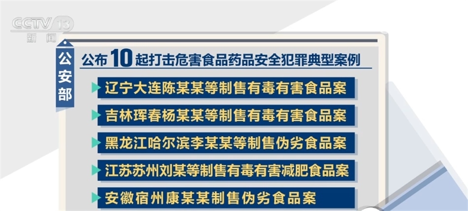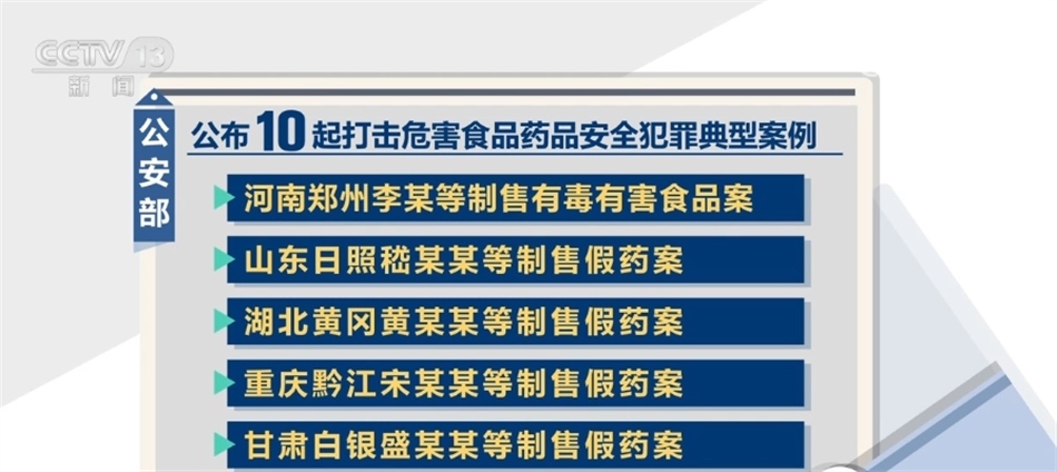 當天,公安部還公布了10起打擊危害食品藥品安全犯罪典型案例,涵蓋農產品、水產品、肉制品、減肥產品、保健食品等食品領域,以及治療風濕、腰腿疼痛、哮喘等老年人常見疾病藥品領域,具有一定的典型性、代表性。案件中有的非法添加化學藥物,有的濫用食品添加劑,有的添加化學藥成分冒充所謂“純中藥”,犯罪手法隱蔽、性質惡劣,給人民群眾身體健康帶來嚴重威脅。