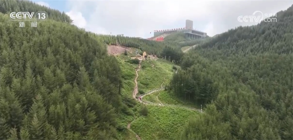 總臺(tái)記者 許國(guó)飛:從六盤(pán)山的腳下要想去往山頂?shù)募o(jì)念館,一共有兩種方式,第一種方式是乘坐擺渡車(chē)上去,第二種方式就是從我腳下的這條“紅軍小道”步行上去,這條小道長(zhǎng)度一共是2.5公里,有65%以上的游客選擇了步行上去。