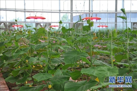 烏蘭察布冷涼蔬菜院士工作站試驗(yàn)基地溫室內(nèi),利用植物生長燈模擬日光,增強(qiáng)光合作用,提高產(chǎn)品質(zhì)量。新華網(wǎng) 周遠(yuǎn)鋼 資料圖