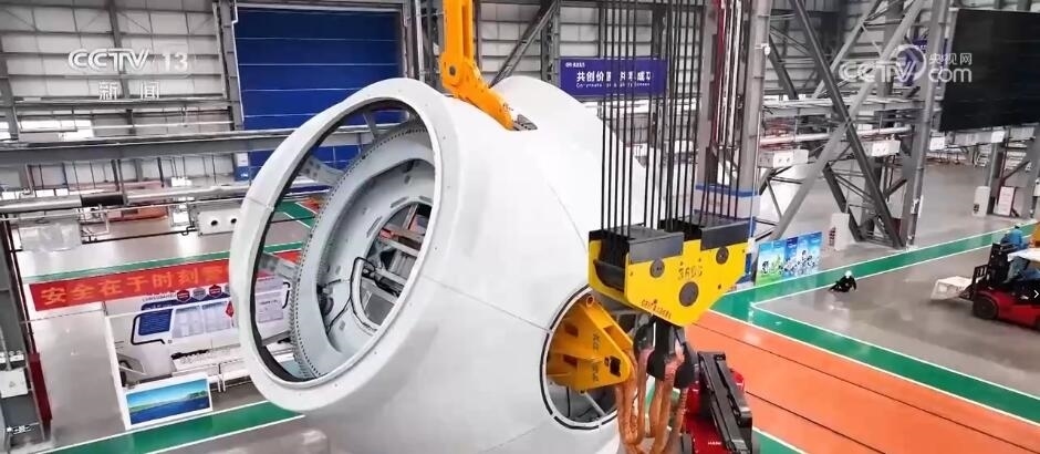 在四川德陽經(jīng)開區(qū)這家風電企業(yè)的生產(chǎn)車間里,工作人員正在進行大功率風電機組的總裝。目前,在這家風電企業(yè)生產(chǎn)的風機葉片最長已經(jīng)達到126米,最新研制的18兆瓦等級風力發(fā)電機組也即將面世。