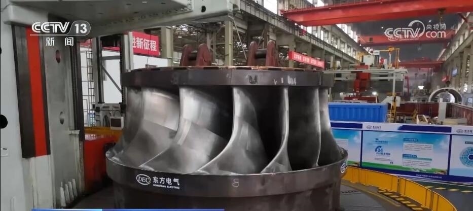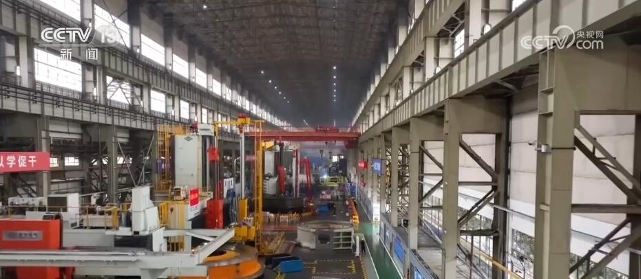 總臺記者 蔣林:我現(xiàn)在就是在位于四川德陽的東方電機的生產(chǎn)車間,這里也是目前中國最為重要的能源裝備的制造基地。現(xiàn)在一天全國所發(fā)的電量里面,每4度有1度就來自于這里的設備。而且根據(jù)我們掌握的最新的生產(chǎn)數(shù)據(jù),也能夠感覺到目前中國能源發(fā)展的新趨勢。截止到2023年的6月底,在過去一年當中,這里所生產(chǎn)的設備里有90%都是清潔能源的設備。比如,我身旁的這個大家伙,它是華龍一號發(fā)電機組的轉(zhuǎn)軸,而像這樣的大塊頭在這個廠房里面比比皆是。
