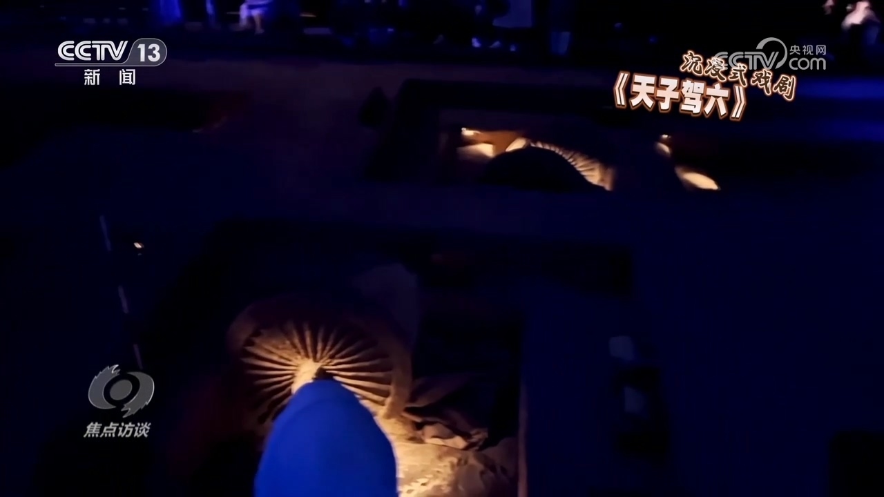 慕順興就是本地人,劇場開業(yè)后,他第一次來就被吸引住了,于是辦了年卡,不光自己看戲,還經(jīng)常給游客推薦劇目,《天子駕六》就是他經(jīng)常推薦的劇。劇場里沒有舞臺,也沒有座位,觀眾們在逼真的考古現(xiàn)場圍圈站定。