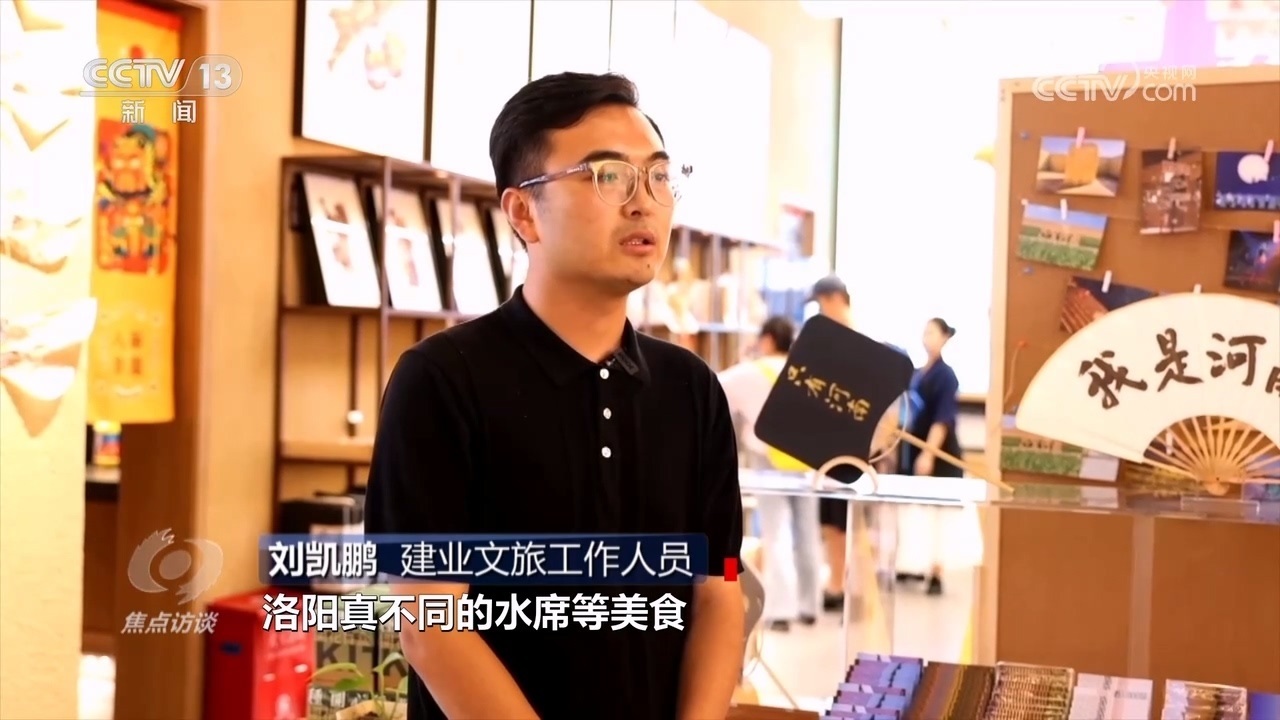 建業(yè)文旅工作人員劉凱鵬:“這個暑期的省外游客占比已經(jīng)超過六成,我們也深度挖掘了當(dāng)?shù)匚幕头沁z文化,游客可以通過拓印一張木板年畫、手做一副蒲扇,來感受非遺文化的記憶之美,同時,各種各樣的河南特色小吃、洛陽真不同的水席等美食,讓游客除了戲劇以外,全方位沉浸在河南文化的熏陶當(dāng)中?!?/p>