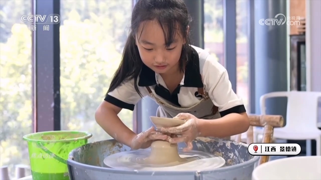 在景德鎮(zhèn)的一家陶瓷工坊,老師正在認(rèn)真講解制作技藝。不過,看起來容易做起來難,大公雞到了自己手里就捏成了個四不像。還是小朋友厲害,小茶碗捏得有模有樣。周曉雷來自湖北武漢,這個暑假她特意帶孩子來景德鎮(zhèn)住一周,想讓孩子了解和體驗陶瓷制作這門非遺文化。