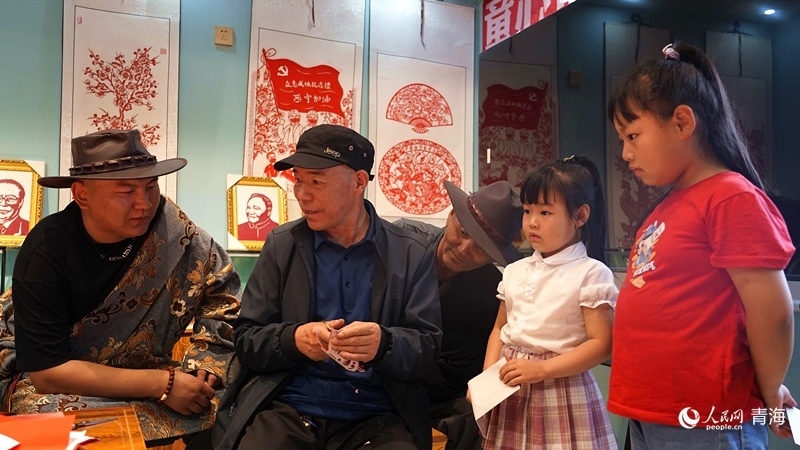 “紅紙對(duì)折,再對(duì)折,先剪出大概輪廓,再剪蝴蝶的觸角,剪刀要慢……”青海省海南藏族自治州貴德縣河陰鎮(zhèn)歇春園社區(qū)紅石榴之家內(nèi),剪紙藝人楊成君正帶領(lǐng)社區(qū)幾名小孩學(xué)習(xí)剪紙,幾位藏族居民也在旁邊饒有興趣地旁觀(guān)。