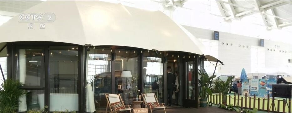 總臺央視記者 張嘉喬:我身后這座科技感十足、外觀極似太空艙的可移動民宿是今年博覽會上的一大亮點,由于它可以拆裝,又配備高科技的家居設(shè)備和人工智能助手,游客可以在這個38平方米的空間里實現(xiàn)住宿、商務(wù)接待、會客等娛樂活動。和傳統(tǒng)的民宿相比,它具有快速安裝、可重復(fù)使用、節(jié)約成本等優(yōu)勢。