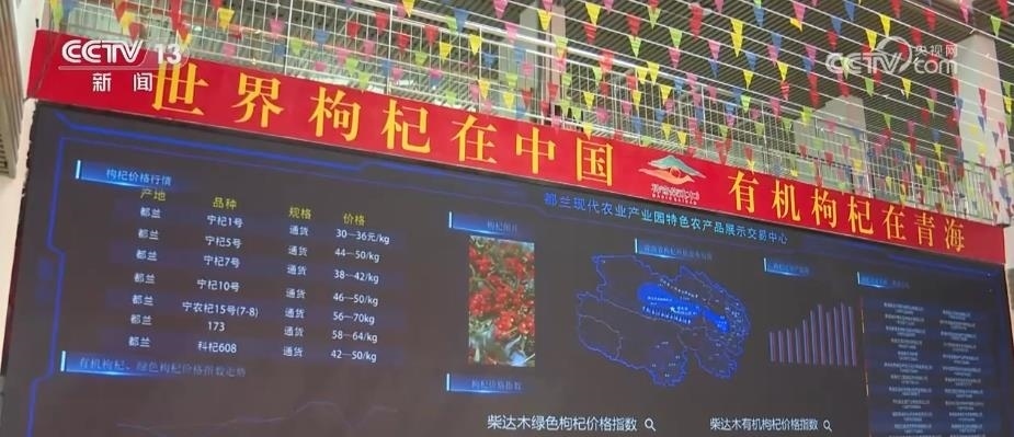 這兩天,在剛剛投入運(yùn)行的都蘭縣國(guó)家級(jí)現(xiàn)代農(nóng)業(yè)產(chǎn)業(yè)園特色農(nóng)產(chǎn)品展示交易中心內(nèi),匯集了不少枸杞種植戶和外來(lái)采購(gòu)商。眼前,這塊屏幕上顯示的,是國(guó)內(nèi)不同品種枸杞當(dāng)前的市場(chǎng)價(jià)格、價(jià)格指數(shù)走勢(shì)、種植區(qū)域分布、產(chǎn)量等信息。