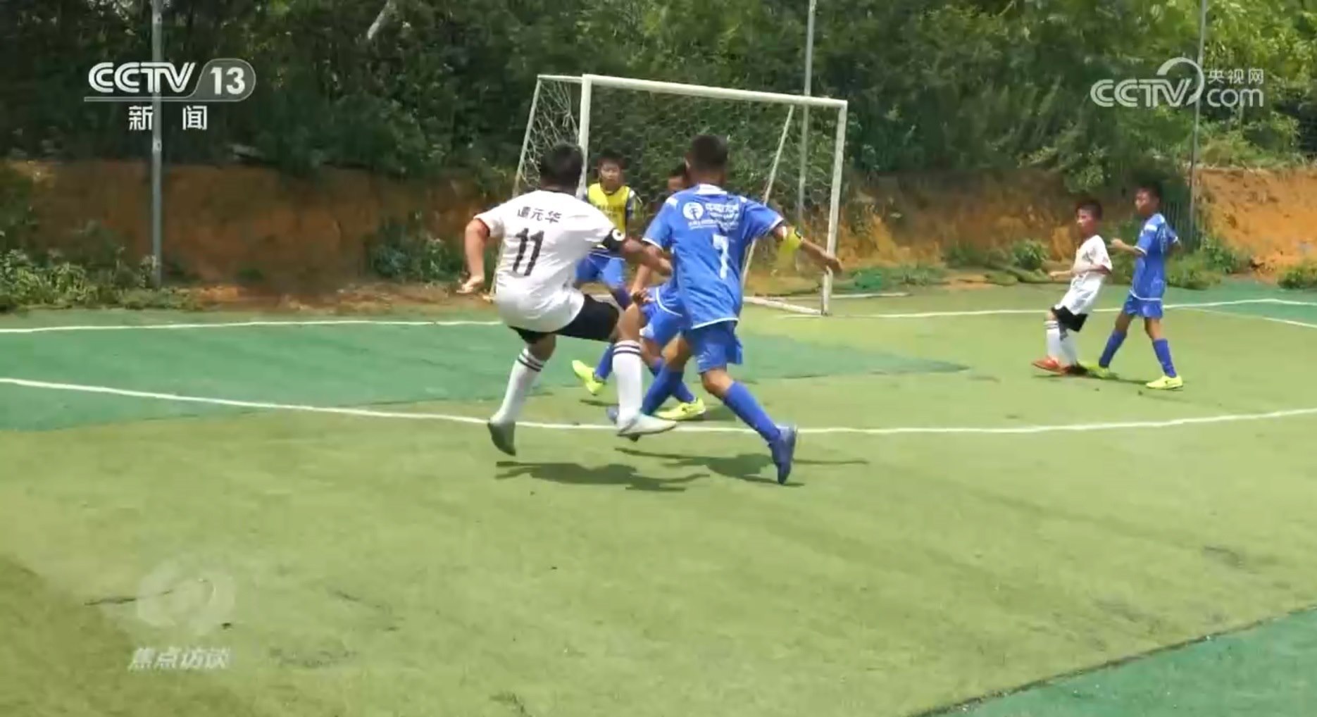 奔跑、傳球、拼搶、射門,在廣西柳州柳江區(qū)穿山鎮(zhèn)高平村平地屯,一場(chǎng)別開生面的足球訓(xùn)練賽正在進(jìn)行著,別看藍(lán)白兩隊(duì)的隊(duì)員們還都只是附近村屯的小學(xué)生,可是踢起球來一點(diǎn)也不含糊。
