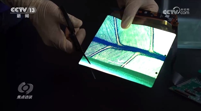 這是一家新型顯示領(lǐng)域科技領(lǐng)軍企業(yè)柔性O(shè)LED高端生產(chǎn)線(xiàn)的實(shí)驗(yàn)室。企業(yè)科研人員向記者展示了他們最新的顛覆性技術(shù)創(chuàng)新成果。