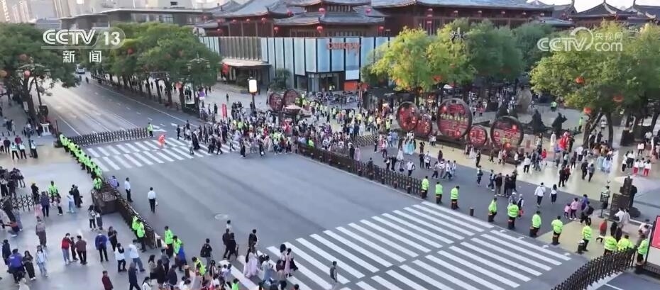 西安大唐不夜城是很多游客到西安必打卡的景點之一。今年中秋國慶假期頭兩天,大唐不夜城的日均客流量達到40萬人。聚起了人氣之后,怎樣保證數十萬游客能夠平安順暢出行,成為景區(qū)面臨的第一道難題。