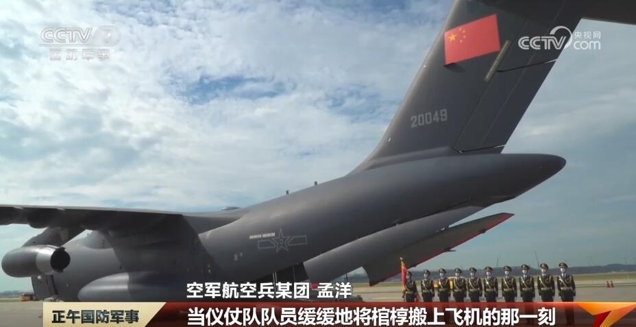 2022年9月,孟洋和機(jī)組成員駕駛運(yùn)-20抵達(dá)韓國(guó)仁川機(jī)場(chǎng),執(zhí)行接迎第九批在韓志愿軍烈士遺骸任務(wù)。