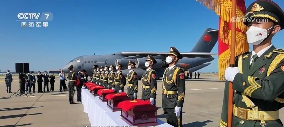 空軍航空兵某團(tuán) 孟洋:當(dāng)時(shí)在儀式的現(xiàn)場(chǎng),我們機(jī)組成員是列隊(duì)在飛機(jī)的后艙位置,準(zhǔn)備迎接烈士遺骸上飛機(jī)。當(dāng)儀仗隊(duì)隊(duì)員緩緩地將棺槨搬上飛機(jī)的那一刻,我看著一面面國(guó)旗覆蓋在棺槨上,直到那一刻,我才更加深刻地理解我們國(guó)旗的顏色是由無(wú)數(shù)革命先烈鮮血染成的。