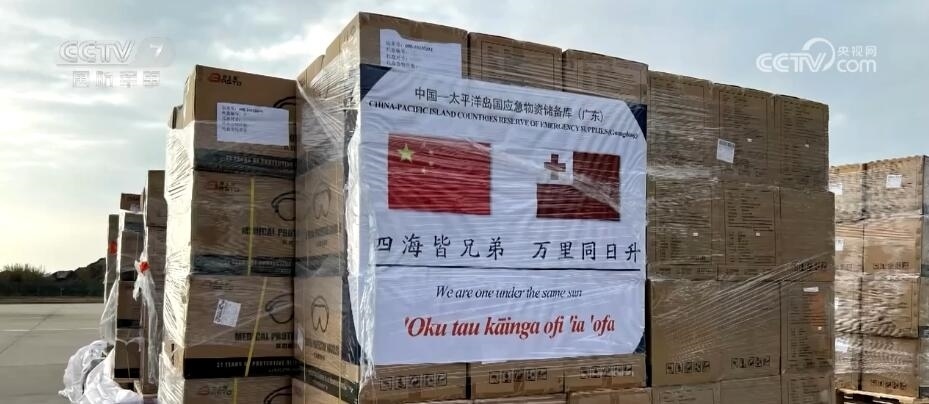 空軍航空兵某團(tuán) 楊樹帥:當(dāng)時(shí)我們集裝的貨物上都印有一面中國(guó)國(guó)旗和(一面)湯加國(guó)旗,并印了一句中國(guó)古詩(shī)“四海皆兄弟,萬(wàn)里同日升”。