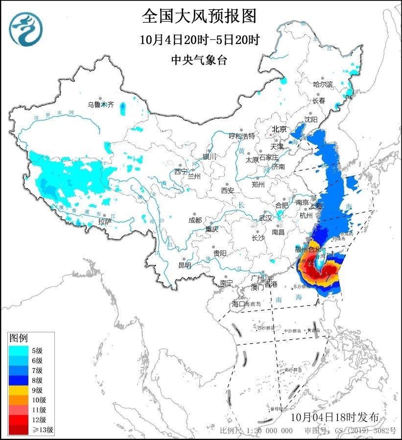 中央氣象臺10月4日18時繼續(xù)發(fā)布大風黃色預警,預計,10月4日20時至5日20時,東海西南部海域、臺灣海峽、臺灣以東洋面、巴士海峽、南海東北部偏北海域?qū)⒂?~9級、陣風10~11級的大風,其中臺灣海峽、臺灣以東洋面、巴士海峽的部分海域風力可達10~12級、陣風13~14級,臺風“小犬”中心經(jīng)過的附近海域風力可達13~14級、陣風15~16級;渤海北部海域、黃海東部海域、東海西北部海域?qū)⒂?級、陣風8級的大風;西藏西部、浙江沿海、福建沿海、臺灣島將有5~6級、陣風7級的大風。