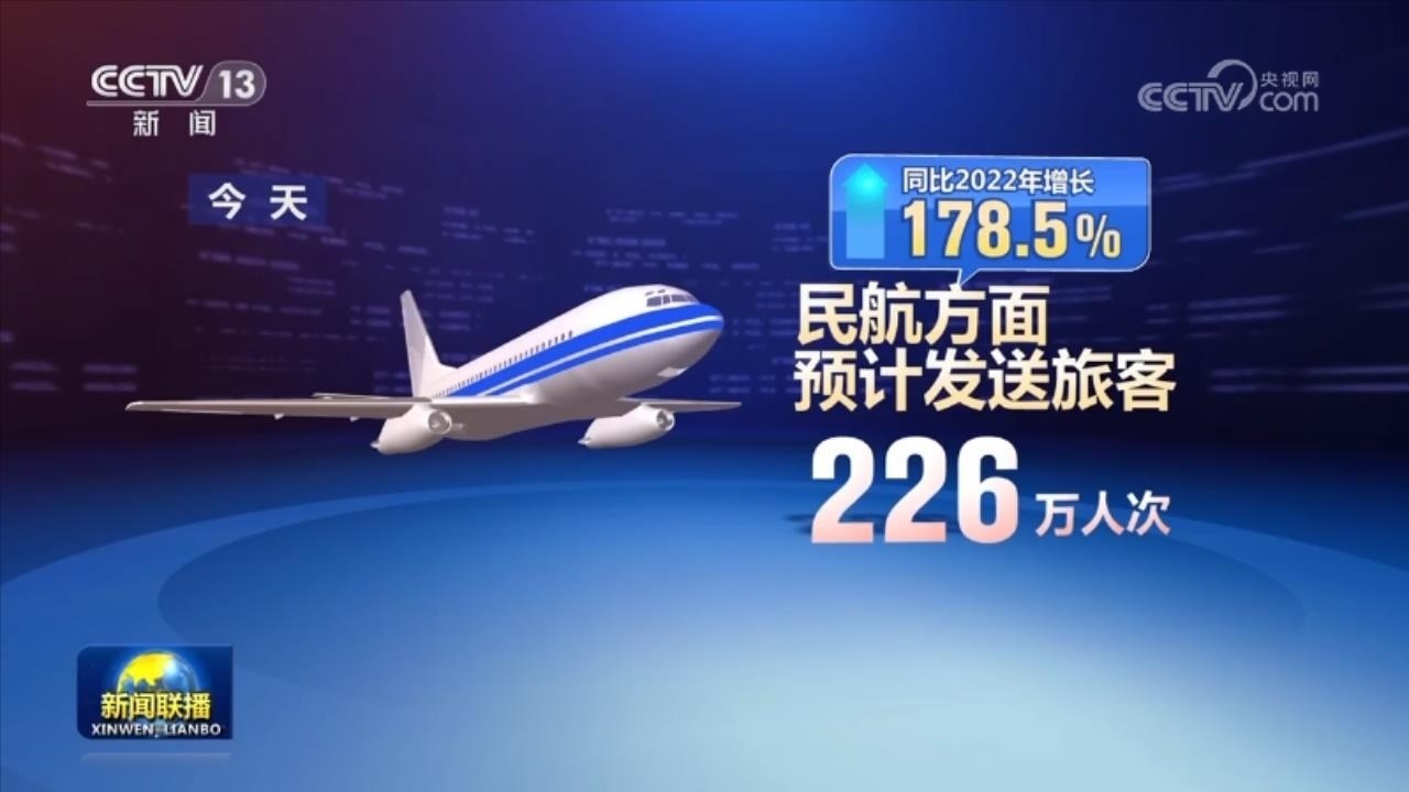 民航方面,今天預(yù)計(jì)發(fā)送旅客226萬人次,同比2022年增長(zhǎng)178.5%。全國(guó)水路預(yù)計(jì)發(fā)送旅客115萬人次,同比2022年增長(zhǎng)164.62%。