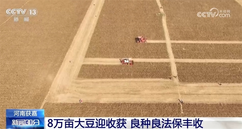 金秋十月,河南新鄉(xiāng)市獲嘉縣8.25萬(wàn)畝大豆迎來(lái)了收獲期,大豆田里收割機(jī)往來(lái)穿梭、有序作業(yè)。近年來(lái),當(dāng)?shù)剞r(nóng)業(yè)專(zhuān)家探索出的一套“良種+良法”相配套、“農(nóng)機(jī)+農(nóng)藝”相結(jié)合的高產(chǎn)優(yōu)質(zhì)栽培管理技術(shù),為大豆高產(chǎn)夯實(shí)了技術(shù)保障。
