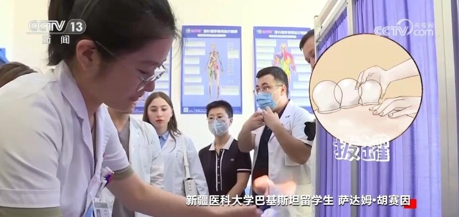 新疆醫(yī)科大學(xué)巴基斯坦留學(xué)生 薩達(dá)姆?胡賽因:“一帶一路”以后,對我們的老百姓也有很大的幫助,主要是中國的醫(yī)生過去。我是前面胳膊拉傷,中醫(yī)醫(yī)生就給我揉一揉,拍我的這個肩膀胳膊,拍了差不多200次,后面給我拔罐兒,做了一次,我基本上就沒疼了。我覺得這個很神奇。