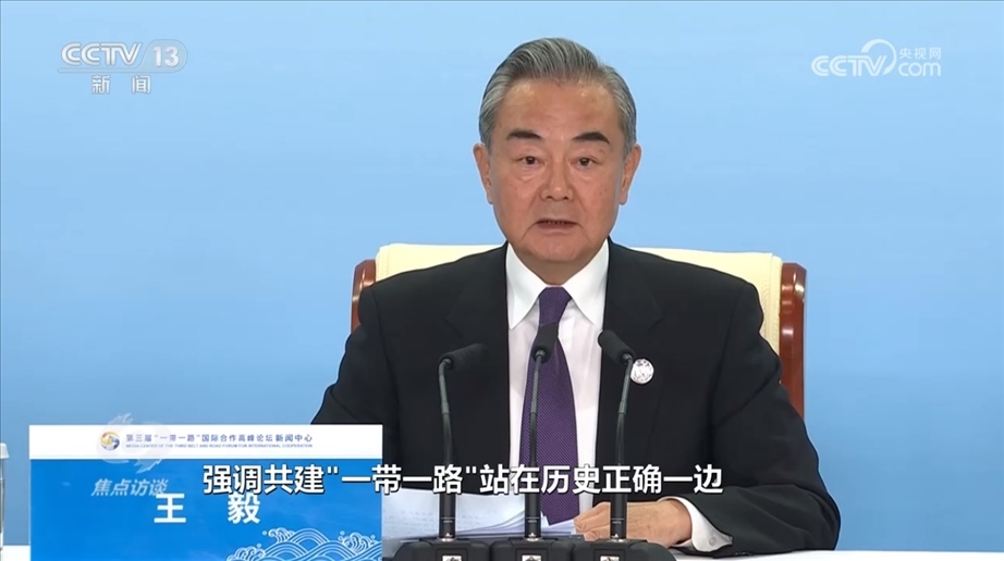 央視網消息(焦點訪談):10月18日,第三屆“一帶一路”國際合作高峰論壇在北京舉行。十年櫛風沐雨,十年春華秋實。中國同各國堅守初心、攜手同行,推動“一帶一路”國際合作從無到有,蓬勃發(fā)展,取得豐碩成果。本次高峰論壇是共建“一帶一路”進程中又一個重要里程碑。10月18日當晚,在高峰論壇結束之際,中共中央政治局委員、外交部長王毅舉行中外記者會,介紹高峰論壇重要成果。