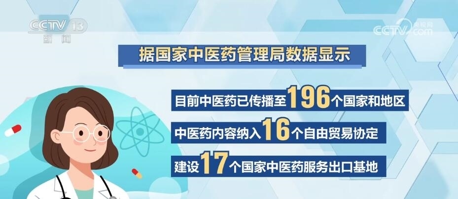 據(jù)國家中醫(yī)藥管理局?jǐn)?shù)據(jù)顯示,目前中醫(yī)藥已傳播至196個(gè)國家和地區(qū),中醫(yī)藥內(nèi)容納入16個(gè)自由貿(mào)易協(xié)定,建設(shè)17個(gè)國家中醫(yī)藥服務(wù)出口基地。與國際標(biāo)準(zhǔn)化組織合作制定頒布64項(xiàng)中醫(yī)藥國際標(biāo)準(zhǔn),復(fù)方青蒿素快速清除瘧疾項(xiàng)目幫助非洲逾百萬人口地區(qū)短期內(nèi)實(shí)現(xiàn)了從高度瘧疾流行區(qū)向低度瘧疾流行區(qū)的轉(zhuǎn)變。