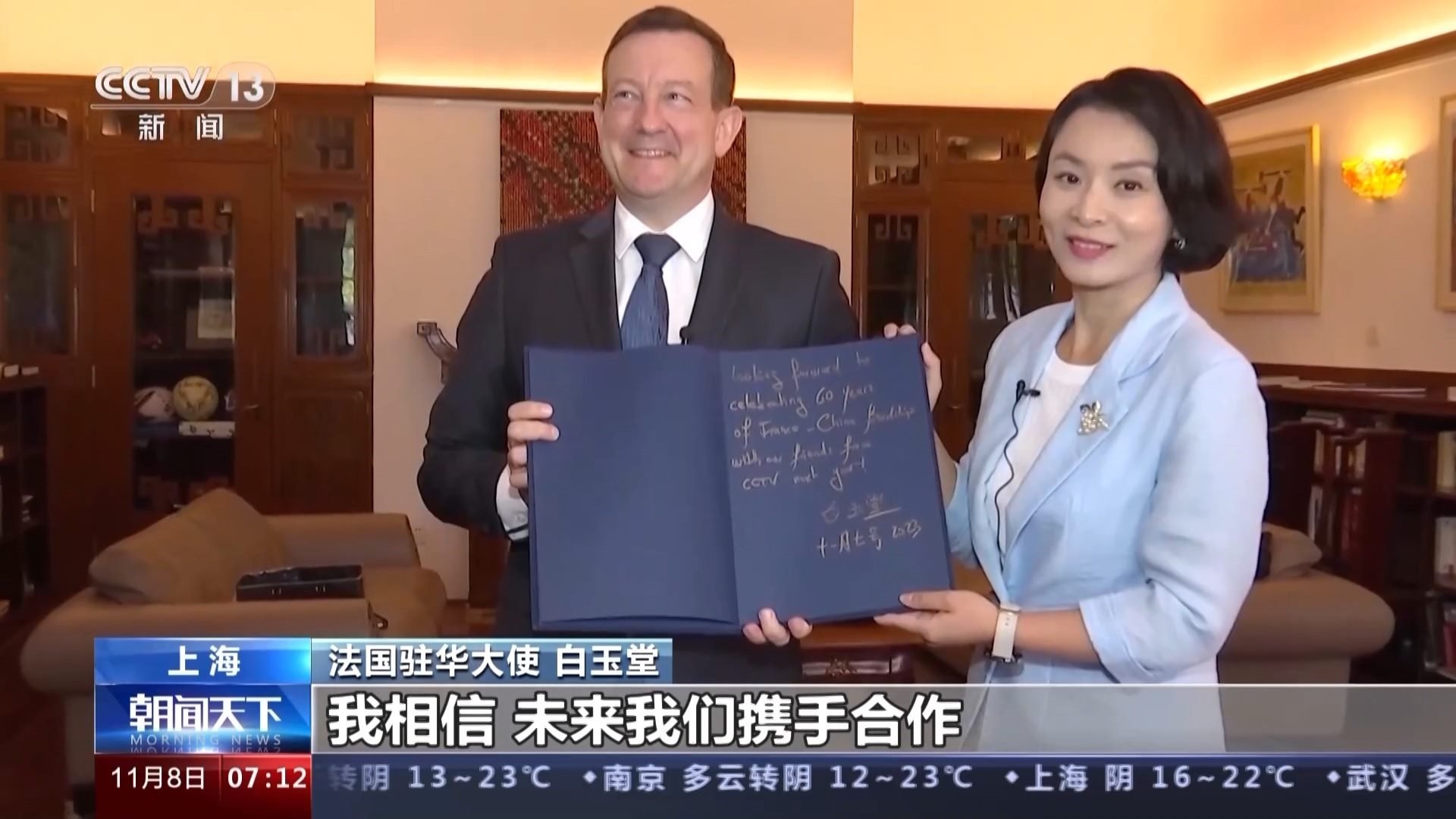 法國駐華大使 白玉堂:今年馬克龍總統(tǒng)訪華,我認(rèn)為兩國領(lǐng)導(dǎo)人傳達(dá)的關(guān)鍵信息之一,就是我們兩國比以往任何時(shí)候都更需要加深合作和相互理解。事實(shí)上,自從這次馬克龍總統(tǒng)訪華以來,我們已經(jīng)做了很多的工作,以各種可能的方式提高法國在中國的曝光度,比如說經(jīng)濟(jì)和貿(mào)易領(lǐng)域,因此也有了法國企業(yè)在今年進(jìn)博會(huì)的大規(guī)模亮相,我們希望中國人民和法國人民建立強(qiáng)有力的聯(lián)系。我認(rèn)為現(xiàn)在我們兩國人民需要更多的交流,我們渴望并十分愿意越來越多的中國朋友到訪法國。當(dāng)然也期待越來越多的法國人,不管是商人、游客,還是學(xué)生都來到中國。我們將竭盡所能支持和促進(jìn)所有的這些交流活動(dòng)。我相信,未來我們攜手合作,能夠取得比過去更為豐碩的成果。(總臺央視記者 李晶晶 王晨 趙迎晨 黃一宸)