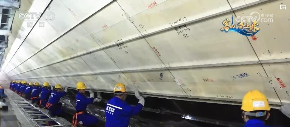 總臺央視記者 李琳:我現(xiàn)在就來到了一艘正在建造的LNG運輸船最核心的液貨艙部分,您看我腳下這種銀光閃閃的鋼板就是能夠承受-163℃的殷瓦鋼,這種薄如紙片的鋼材在2017年以前是不能實現(xiàn)國產(chǎn)的。